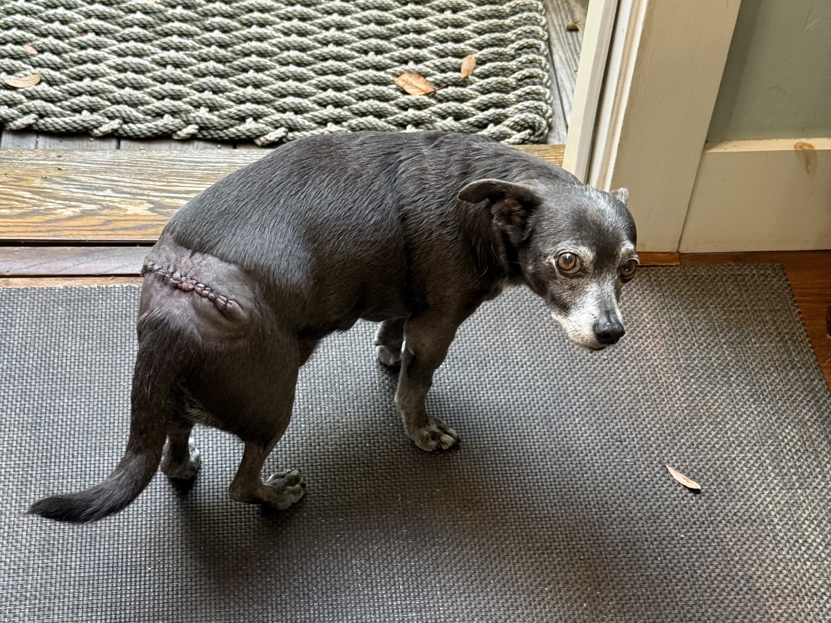 It took about six weeks for my ribs to heal completely. While that was happening, September presented another health issue to deal with: this time for our boy dog, Pico. What started as a small bump on his butt quickly grew into a large Mastocytoma (Mast Cell Tumor). At the end of August he had surgery to remove the mass and he got a new nickname: “Zipper Butt”.